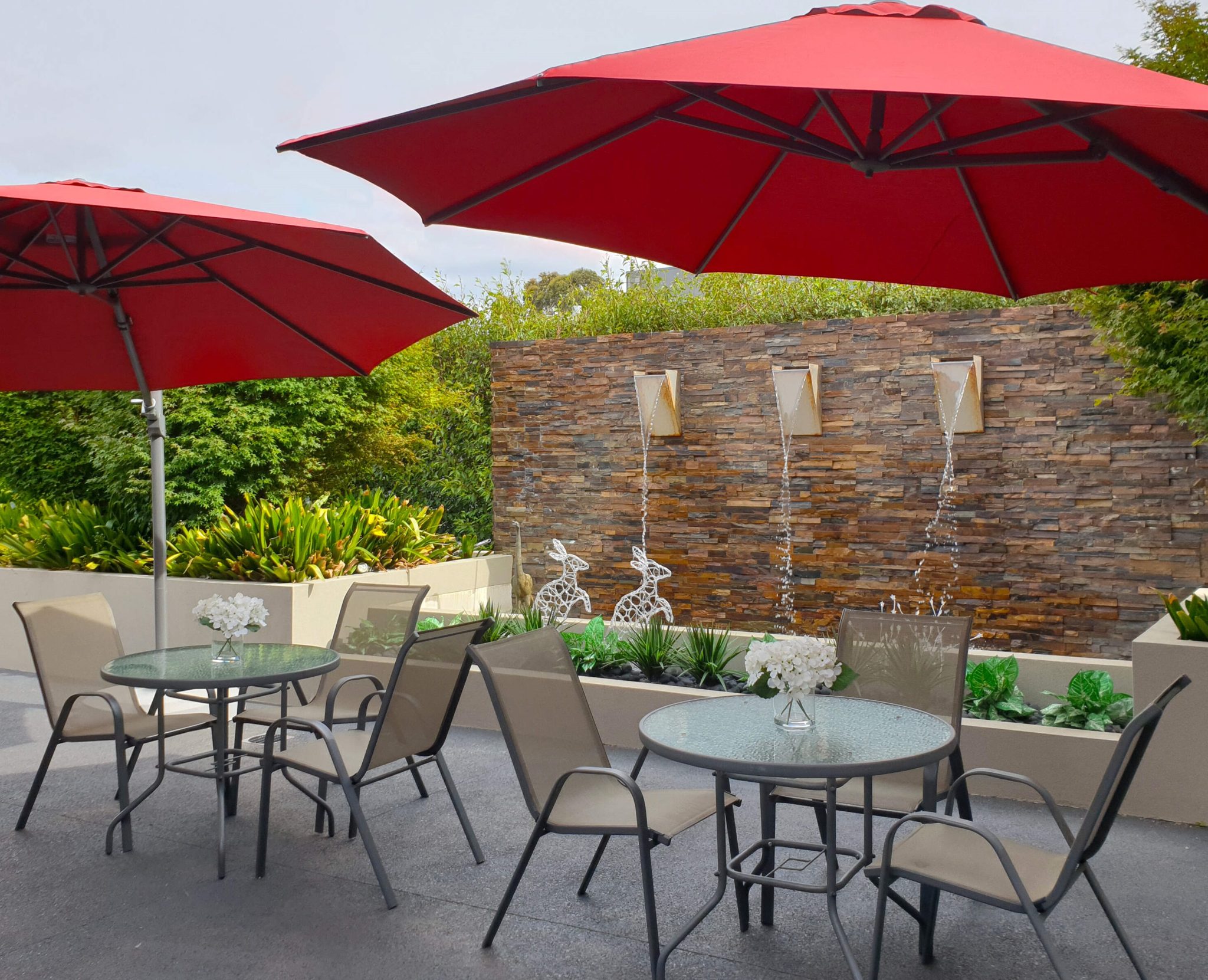Our deluxe rooms feature an electric hi low bed, large smart TV, built-in wardrobes with lockable compartment, bed side table, window furnishings, armchair, over the bed table, private air-conditioning, views to our landscaped gardens, courtyards, and some include private access to the courtyards and balconies. Superior rooms also take into consideration the proximity to nurse’s station.