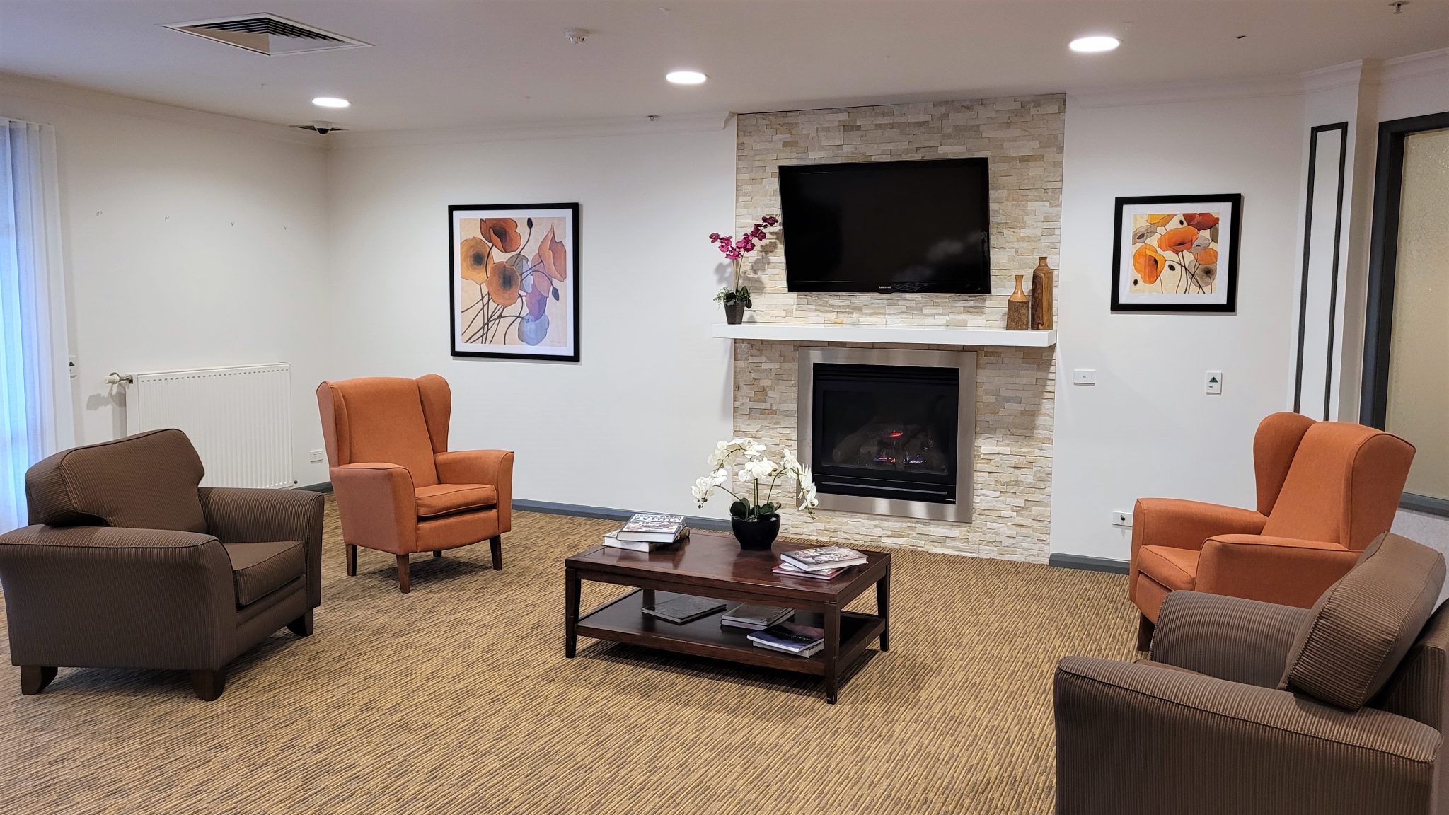 The facility boasts spacious private rooms with ample sunlight and adjoining en-suites. Many of the rooms look out onto our landscaped courtyards. There are also interconnecting rooms available for couples. All rooms include an adjustable electric single bed with the latest nurse call system.